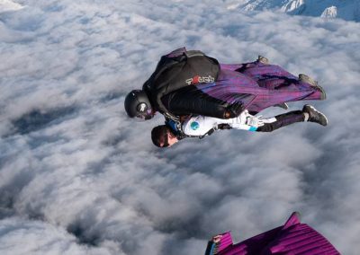 Ambroise is the free bird who imagined and co-developed the tandem wingsuit technique with Vincent. He now has over 6,000 jumps, hundreds of base jump, speed riding and speed flying flights, and teaches skydiving in almost all existing disciplines.
